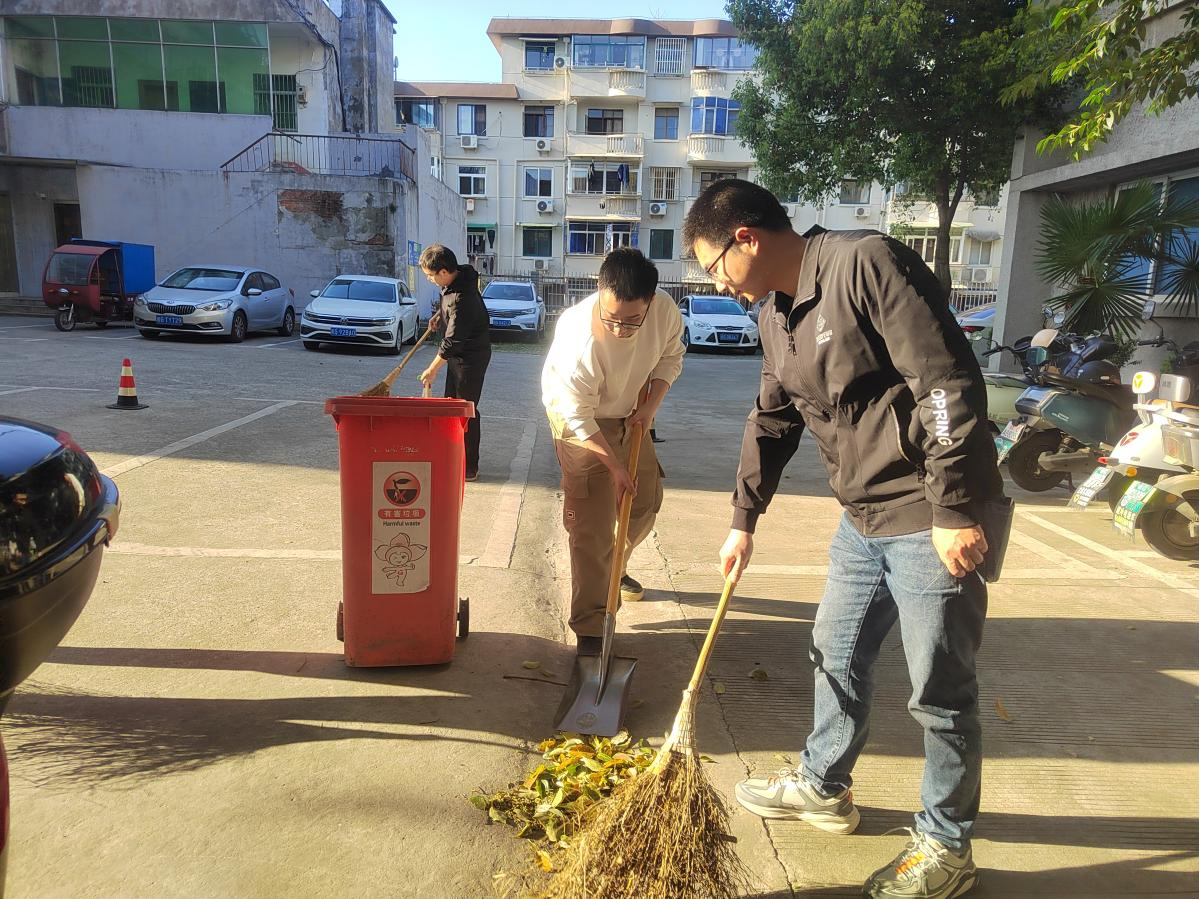 隨著活動正式開始,各小組在區域負責人的帶領下迅速投入到緊張而有序的工作中。宣傳欄清潔組的志愿者們以細致入微的態度擦拭著每一塊宣傳板,期間還相互交流清潔技巧,力求達到最佳清潔效果。小組成員各司其職,有能力者主動承擔起高處清潔任務,大家協同合作,高效有序,去除了積塵,讓宣傳欄煥然一新,成為傳播正能量的亮麗風景線。電動停車區域的志愿者們,則不畏落葉繁多,手持掃帚,耐心清掃。盡管遭遇大風挑戰,剛掃好的落葉隨即被吹散,但志愿者們并未退縮,而是迅速調整策略,采取兩人一組的方式,一人負責清掃,另一人負責用鐵鍬收集落葉并倒入垃圾桶。在大家的共同努力下,車輛停放區最終恢復了整潔有序,為員工提供了更加便捷、安全的停車環境。活動過程中,黨員和團員們充分發揮了不怕臟、不怕累的精神風貌,整個辦公區域因他們的辛勤付出而煥發出全新的生機與活力。